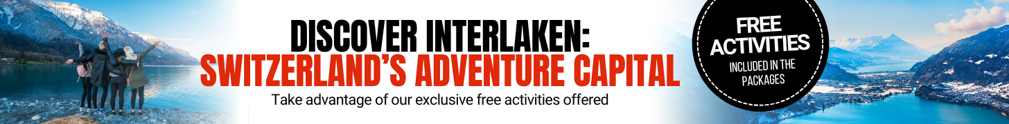 Interlaken is a stunning alpine town nestled between Lakes Thun and Brienz, surrounded by the iconic peaks of Eiger, Mönch and Jungfrau. Known for its dramatic beauty and endless adventure, it’s the perfect year-round playgroung, from paragliding and kayaking to hiking, ice skating and more.